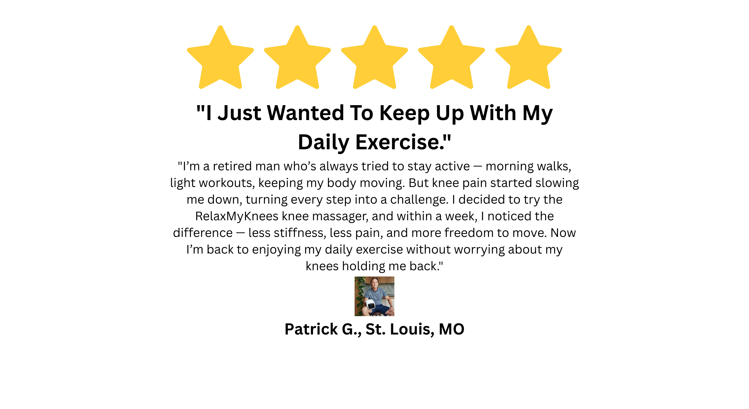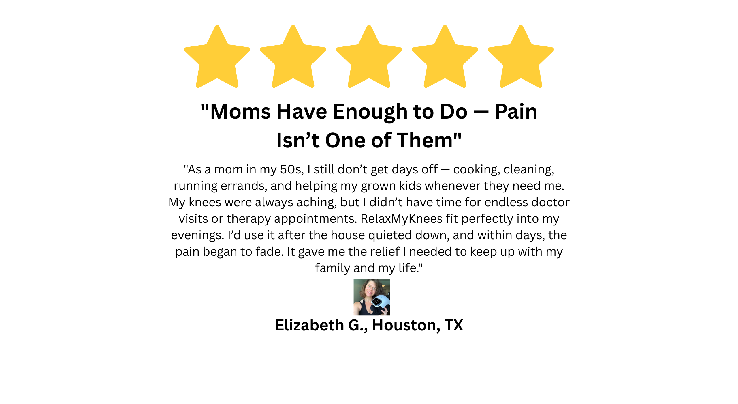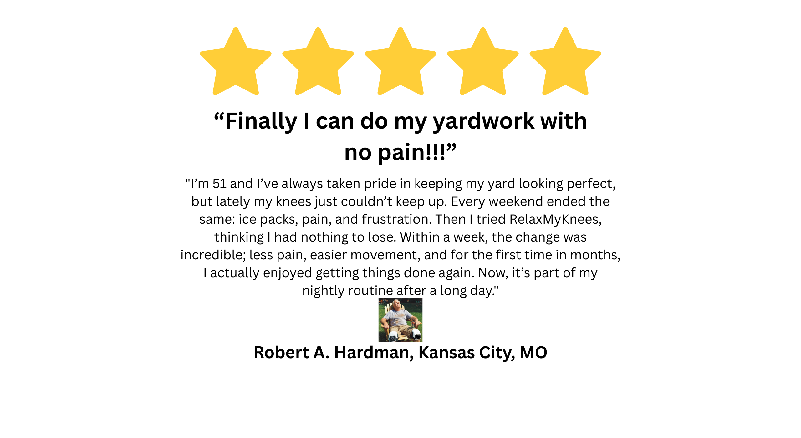 At RelaxMyKnees™, we believe no one should have to miss life’s most important moments because of knee pain. Our journey began when a loved one was told the only option was surgery, but we refused to accept that as the end of the story. After searching endlessly for a safe, effective alternative, we found a solution that helped them walk, play, and smile again.